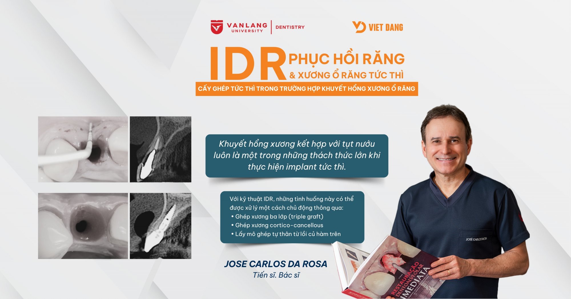 IDR không chỉ là một kỹ thuật mới mà là một bước tiến trong cách tiếp cận implant tức thì trên thế giới. Chương trình lần này mang lại cơ hội để Bác sĩ tiếp cận phương pháp này một cách bài bản, trực tiếp từ người phát triển, với đầy đủ nền tảng lý thuyết và thực hành lâm sàng. Đây là bước nâng cấp cần thiết cho những Bác sĩ mong muốn phát triển chuyên môn một cách bền vững và có kiểm soát.